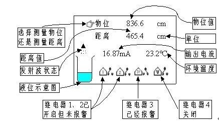 中文背光液晶:瞬時流量、累計流量、物位測量值、距離測量值、變送值、環(huán)境溫度值、回波狀態(tài)、報警顯示、算法選擇等。