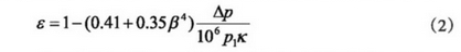 當(dāng)所測(cè)天然氣流經(jīng)孔板時(shí),由于流速和壓力的改變而伴隨著密度的改變(氣體壓力從p1降為p2,因膨脹而使密度減小),為適應(yīng)此種變化以修正因假設(shè)密度等于常量而對(duì)流量引起的偏差,因此必須加入一個(gè)系數(shù),這個(gè)系數(shù)被稱為可膨脹系數(shù)e。