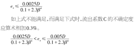 節(jié)流裝置在工藝管線上安裝時(shí),應(yīng)注意上下游直管段與工藝管道的同軸度。產(chǎn)品加工中要確保下列要求:當(dāng)節(jié)流件的軸線與上、下游側(cè)管道軸線之間距離ex滿足下式時(shí)流出系數(shù)C無(wú)附加不確定度。