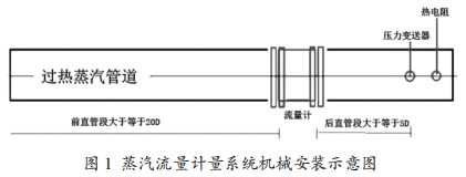 渦街流量計(jì)在測量優(yōu)勢上較之節(jié)流式差壓流量計(jì)更加明顯,但該流量計(jì)的缺陷問題也較為突出,渦街流量計(jì)只能對工況條件下的體積流量進(jìn)行顯示,這導(dǎo)致該流量計(jì)不能有效實(shí)現(xiàn)貿(mào)易計(jì)量。出于測量需要,在使用渦街流量計(jì)時(shí)還要配備熱電阻、壓力變送器和流量計(jì)算機(jī)。渦街流量計(jì)的準(zhǔn)確度等級最好為1.0級,選用長頸、高溫型最為合適,熱電阻的插入深度應(yīng)當(dāng)在150mm左右,配合溫度套管,且溫度測量范圍要維持在0~400℃間,壓力變送器的壓力測量范圍為0~3MPa,在安裝時(shí),蒸汽流量計(jì)量系統(tǒng)要嚴(yán)格遵循國家標(biāo)準(zhǔn)。常用的安裝方法有機(jī)械安裝和電氣安裝2種。使用機(jī)械安裝需要注意管道振動(dòng)的問題,如果現(xiàn)場存在蒸汽管道振動(dòng)劇烈,或者因?yàn)榱熊囆旭偟纫蛩匾l(fā)外部振動(dòng)現(xiàn)象時(shí),渦街流量計(jì)需要在前后端安裝抗振動(dòng)軟節(jié)。