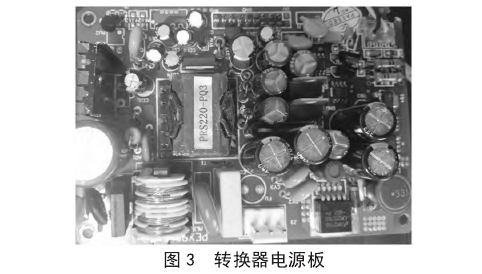 根據(jù)現(xiàn)場(chǎng)的使用情況,每次10kV電網(wǎng)出現(xiàn)異常停送電后,電磁流量計(jì)的顯示屏幕均會(huì)異常。異常的主要現(xiàn)象為顯示屏不亮、白屏、閃屏,其中顯示屏不亮所占比例達(dá)95%以上,白屏與閃屏情況較少。本次主要分析顯示屏不亮的現(xiàn)象。由電磁流量計(jì)轉(zhuǎn)換器結(jié)構(gòu)可知,顯示屏不亮的主要原因在于轉(zhuǎn)換器供電電源板出現(xiàn)異常。通過(guò)反復(fù)檢測(cè)電磁流量計(jì)電源板,發(fā)現(xiàn)電源板發(fā)生故障的主要原因在于一個(gè)濾波電容(規(guī)格為100μF、25V)損壞。轉(zhuǎn)換器電源板的具體詳情見(jiàn)圖3。