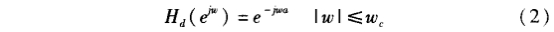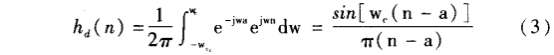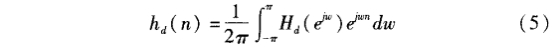 1)根據(jù)技術(shù)要求確定待求濾波器的單位取樣hd(n)。如果給出待求濾波器的頻率響應(yīng)為Hd(ejw),那么單位取樣響應(yīng)用下式求出: