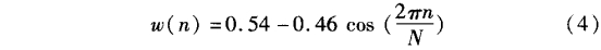 為了從hd(n)得到一個(gè)FIR濾波器,必須同時(shí)在兩邊截取hd(n)。而要得到-一個(gè)因果的線性相位濾波器,且它h(n)的長(zhǎng).度為M,這種操作叫做“加窗”,則h(n)可以看作是hd(n)與窗函數(shù)w(n)的乘積:根據(jù)w(n)的不同定義,可以得到各種不同的窗結(jié)構(gòu),包括矩形窗、三角型窗、漢寧窗、海明窗、布萊克曼窗等,這里采用的是海明窗進(jìn)行FIR數(shù)字濾波器的設(shè)計(jì)。海明窗這種窗函數(shù)是漢寧窗的一種變形,它的形狀也相似于一個(gè)余弦曲線。可定義為:
