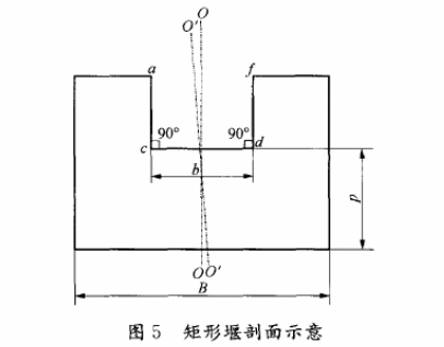 1}矩形缺口中垂線應(yīng)與行近渠槽中心線相重合,側(cè)緣(ac,fd)與底緣(cd)交角為90°,如圖5所示。