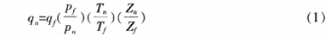 式中:qn、qƒ----標準參比條件、工況條件下的體積流量:qn、pƒ----標準參比條件、工況條件下的絕對靜壓力;Tn、Tƒ----標準參比條件.工況條件下的熱力學溫度;Zn、Zƒ標準參比條件.工況條件下的壓縮因子。標準參比條件下的累計氣量Qn為