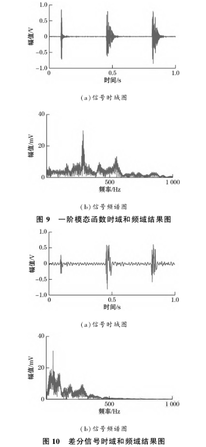 上述信號進行分解后得到的一階本征模態(tài)函數(shù)時域與頻域結(jié)果如圖9所示。從結(jié)果可以看出,EMD處理后得到的本征模態(tài)函數(shù)基本保留了原有振動信號的所有特征,幅值較大處對應(yīng)的頻率基本--致。