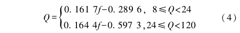 按照JJG1121-2015《旋進旋渦流量計》的檢定要求,對流量計進行標定,得到瞬時流量Q(m3/h)與頻率ƒ(Hz)之間的函數(shù)關(guān)系式如下: