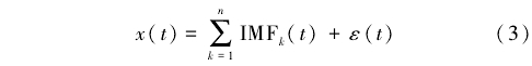 原始信號x(t)分解過程為:首先提取信號的極大值與極小值,通過三次樣條插值得到包絡(luò)信號計算其平均值mi(t),判斷差值hi(t)=x(t)-mi(t)是否為IMF分量,如果不是,則將差值作為下一次分解目標并重復(fù)以上步驟,直到得到本征模態(tài)函數(shù)IMFk(t)。每次提取IMF后,從原始信號中減去對應(yīng)的本征模態(tài)函.數(shù),再進行下一次分解,直到最后的信號中不存在IMF,最終,原始信號可以表示為