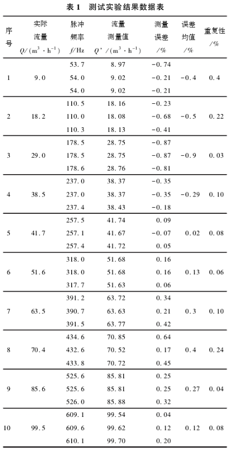 對實驗平臺管道施加3~4Hz的振動信號,在旋進旋渦流量計的量程內(nèi),任取10個流量點,每個流量點重復(fù)進行3次實驗,實驗結(jié)果如表1所示。